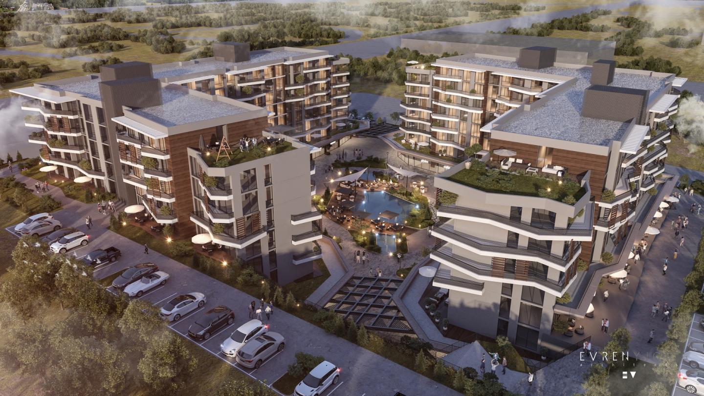 The main design intention of this Project is the creation of a center for the social gathering of dwellers due to this reason mass placement is arranged corner of the site. By this way; all apartments have a satisfying view; some of them face this internal landscape and some of them face to surrounding of site. This socialization intention is supported by ground floor commercial areas. At the first floor; mass is surrounded by terrace; in that way continuation of the landscape is provided for dwellers. Transparency is another element for that project whose façade is designed lots of windows and terraces and its transparency level is regulated with shading elements.