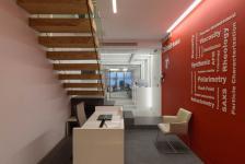 In general, the main idea of the interior design of the Varesh Building is the use of parallel lines in order to create a depth of field in the small spaces. Also, illustrating Anton Paar's corporate colors throughout the building and emphasizing on public spaces such as the entrance lobby and meeting room with red color was another goal to be achieved in this project.