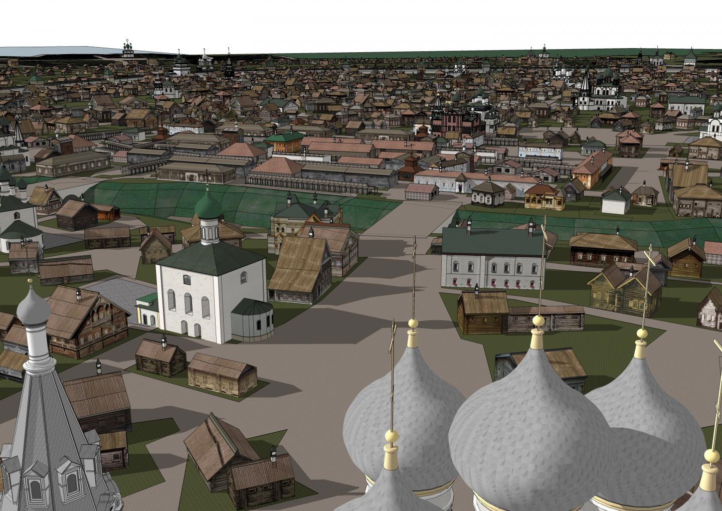 Less data is preserved about the pre-regular building of Yaroslavl in the seventeenth century and yet, with a certain degree of artistic approach, it was possible to mirror it in 3D.