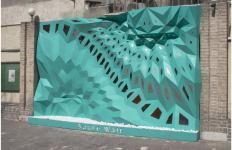 The methods that had been used for making this project were laser cutting techniques, folding and welding. The components of the wall are 340 non-similar pieces which are joined to each other with 552 different angles.