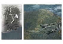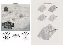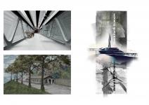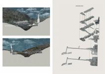 transportation of site with sea level), school builiding and cinema building. The aim of the building provide a new potential for vitalization of site. The Earth Science Institute is composed, two institute building, a data tower, a museum (which use the old school building as a extension), a semi open presentation hall (which is formed by old cinema building), a caal mine (which is connected with museum and institute building with the help mining tunnels and bridge) and an accommodation building. The institute buildings are separated according to their researching areas as above earth sciences and below earth sciences. This separated buildings are integrated with the help of bridges. The multipurpose hall is located as meeting hall for both institute building. The data tower is formed on the intersection of bridge with institute building. The data tower’s aim is collecting data from the receptors which is located in different regions of Zonguldak and analyze them to set light to transformation of Zonguldak’s climate, air quality,