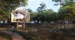All units in the project - from the smallest service units to the biggest gathering spaces - are designed as variations on a theme. A single structural system and material palette are applied to different forms. Each unit is wrapped with a framework of repeating wooden ribs which define the modularity, give the scale, and constitute the final form. A secondary rib system that runs in the opposite direction serves as the load-bearing to the main rib system. Every unit sits on supports and is slightly detached from the natural ground, ensuring the minimum impact on the existing vegetation and soil formation. As the main aspect of overall design approach, natural, sustainable and recyclable materials with minimum ecologic footprint are to be utilized for the making of each unit.