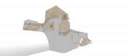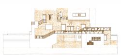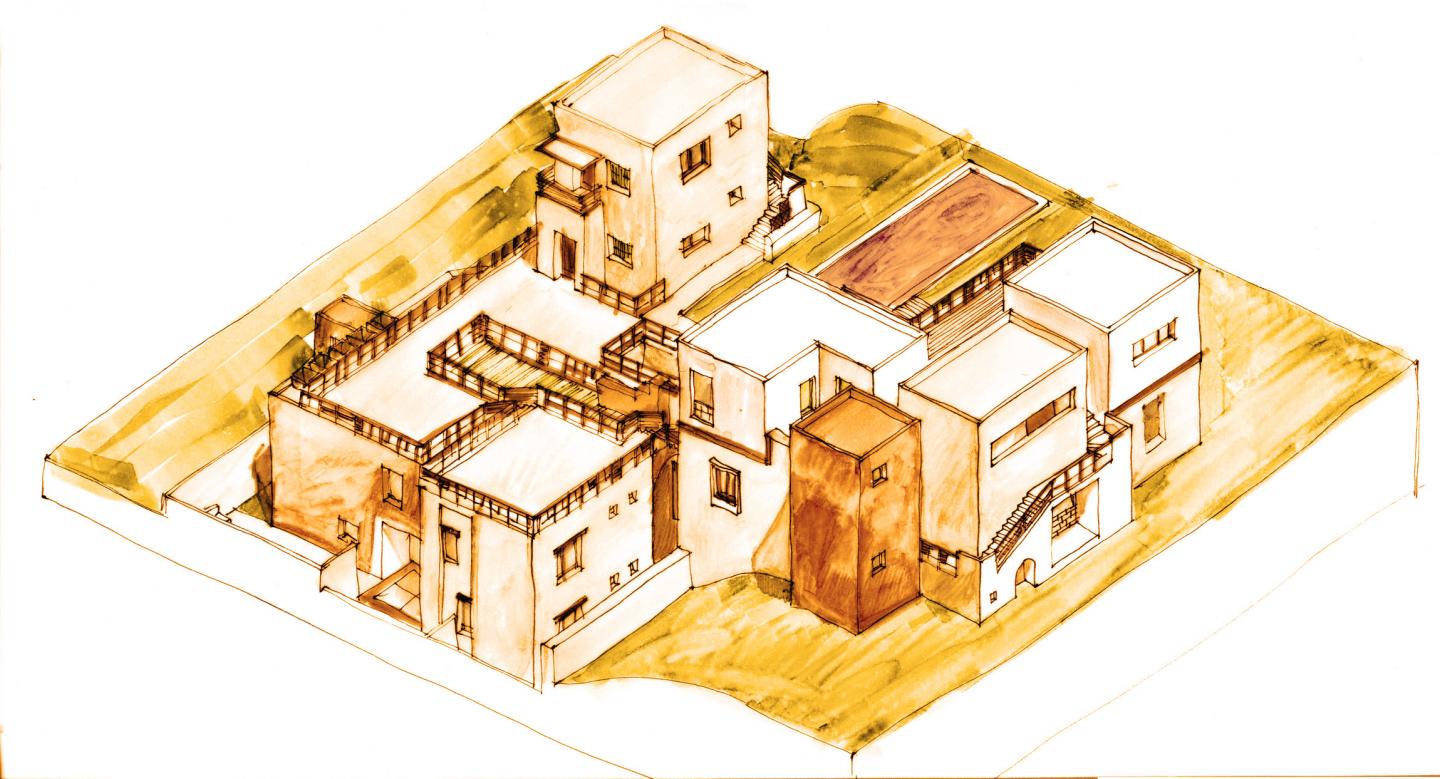 The house owner a professional photographer yearning fir a modern desert oasis vernacular with stone built walls and maybe wooden roofs rejected all the known vernacular forms of architecture which were taken by Egyptian iconic architect Hassan Fathy thus he denied any use of vaults domes or squinches , wind catches the land is divided into three parts an agricultural field of wheat a house zone and a a place for an artificial pond to cultivate a breed of fish the client was into permaculture however the design was not built and the land was even sold later thus it remains a design on paper.the client intended for the house that contained 8 bedrooms four of them separate from the main house even seven out of eight bedrooms could be rented to foreigners visiting the handcrafts fair of pottery in Fayoum Oasis the rural side of egypt thus the house could be functioned as a small 8 bedroom boutique hotel .