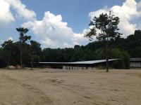 Among those same mountains in Chon Buri, a two-storey storage building – rectangular in shape and 80 metres long – rests on the bed of a pond that’s been dry for two decades. It was intentionally built subsurface so it wouldn’t block views of the lovely landscape and closer-by nature.