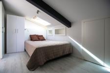 Every design in the room is as much as it should be to make his life easier, no more no less. When the architects examined this space which was originally 85 sqm, they realized that a second wall was built inside the space in order to save the head height and they broke these non-supporting walls and increased the area to 132 sqm. Roof windows was used to get the light inside as much as possible and to make the space bright and enlarged in the volume and height.
