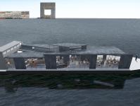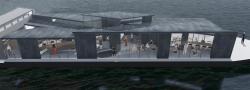 zU-studio was invited to design a restaurant. An inspiring place for people to meet. The pavilion will be build on top of an old Dortmunder Ship in the new harbor that has already started its construction. It will be surrounded by other ships and an Soviet Zulu class submarine B-80.