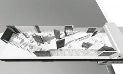 The structure, formed by thin walls disposed in different angles, is inspired by Richard Serra's sculpture at the Museumplein in Amsterdam. This new geometry generates different spaces interconnected with each other and opens to the IJ Water and gives a beautiful view from the City over the harbour.