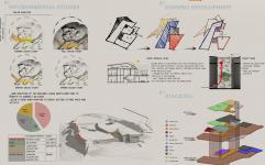 The most important space in the museum are exhibition halls. The exhibition halls will be design to provide each of halls will accommodate unique nature exhibits, and they are hierarchy organize and connected with circulation system that reflects the mountain scape in horizontal and vertical dimension.