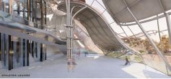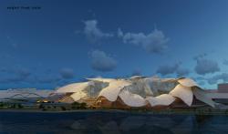 LOTUS blossoms in a post-industrial site like Lotus flowers blossoms above muddy waters in order to gather & celebrate different cultures under one roof. In order to achieve this goal, a contrasting landmark is designed. A feather-like roof is created in order to highlight the circulation layer and filter the light as if spectators are walking inside the water.In order to accentuate water activities, cubes are placed into a feather-like composition. Lotus also aims to clean water in landscape terraces & infinity pools and use the cleaned river water in pools. The water canals that are designed for this reason also created a possibility to access the building by boat. In this way, LOTUS aims to be an eco-friendly competition venue for PRAHA 2032 and a long-lasting landmark. Furthermore, interior competition pools are placed in a way with level differences to maintain visual connectivity as it is seen in Section AA. In this way, spectators can follow both swimming and diving competitions at the same time from certain locations.