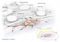 Within this Olympic Park, LOTUS Aquatics Centre is proposed as water activity competition venue. A Harbour Spa is integrated into the design to create a public amenity which PRAHA 7 neighbors can benefit from even after the Olympic games. The site is used to be an abandoned factory which is located right next to a train line that connects Prague to Berlin. Thus, in time the site is detached from the neighborhood. To revitalize the site, prevent isolation and create a river experience, LOTUS is prosed.