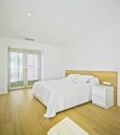 On the upper floor there are two permanent bedrooms and a multi-use flexible room, all of which open onto the terrace. Staying with the concept of a continuous cupboard on this second floor, the perimeter of the bedrooms is provided with a folded away dressing room which coincides with the façade, becoming bedroom-dressing rooms and thus increasing the use of the area. The flexible room meets the requirements of a bedroom for use from time to time, being at the same time a small sitting room for the rest of the time. A flexible partition wall made of four wooden panels allows this room to be fully opened onto the landing when the room is not being used as a bedroom, enabling the double use and improving, moreover, the sense of space when coming up to the second floor.