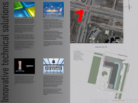 The double-glazed window is used, the use of translucent solar PV elements such as Pilkington Sunplus. Roof glazing, developed in the following version: triplex 60 mm / double-glazed window with electric heating / effective double-glazed window with inert gas xeon 100% or krypton - 100% / double-glazed window with transparent solar panel Pilkington Sunplus. The territory of the complex, pave the glass paving tiles Onyx Solar with integrated solar panels.