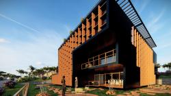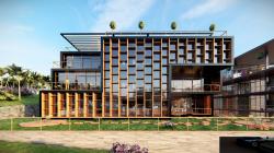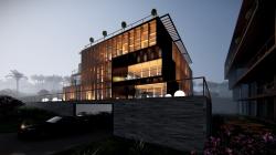 The project is located in Kigali, the capital of Rwanda, located in East Africa. Located in the Gacuriro area, the plot is located on an alley that connects to the main road. Office building is designed near the first residential apartment as second phase. Apartment building has cantilevers to one side. These cantilevers gave inspiration for new office building design. Opposite direction setbacks is designed on the each corner of office building. While designing that building, we thought about how we could give an architectural identity to an office building consisting of 3 floors. We designed the structure without losing too much space by staggering in the opposite direction at the corners of the building. The setbacks designed in different directions at the corner points define an inverted Z-shaped sign on the front of the building. This resulting façade area was designed as a grid with vertical and horizontal wooden profiles. After parking the car on the basement floor, you can reach the 3 office floors on the upper floors of the building or the cafe area on the roof terrace. Triple spheres were used as night lighting in the garden landscaping. These triple spheres and the rational geometric rectangular design of the building contrast with each other and strengthen each other's existence. Although it is a very low-rise office building, the design of the building is unique and has the architectural design quality that will provide the prestige required to represent a company's brand.
