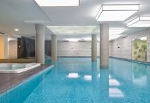 According to all the space functions, walls were covered with ceramic, natural stone and mosaics in pool and spa area. On the other hand, the massage rooms’ walls were covered with textile based wallpapers. The use of soft colors in earth tones as well as the concrete colors were helped to achieve more spacious spaces in such kind of a functional interiors.