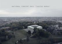 Entering the complex, you walk into a space that has glass on the floor and its underlying spaces are visible. Thanks to this glass floor, spaces that are even 7 meters below the ground will have natural light. Ultimately, we are faced with a rigidity of dark concrete, which is in contrast to the transparent materials of glass in all aspects. This heavy metal reinforced concrete structure is also two-shell, inspired by historical domes of two shells emphasizing the salon's protection against external noises. The integrated armored structure is coated with a truss structure on the roof, a space for artistic circles, workshops and training venues for the great artists of the Lithuanian Symphony Orchestra as the practitioner will have a full view of both the city's viewpoint and the great hall. All the main functions are in this concrete core, moving the sub spaces to the lower floor. Transferring between floors of the building is all through the ramps formed in the midst of the two shells of the core. In addition, nine vertical shafts provide different services. In the interior design of the main hall, we tried to achieve the ideal accuracy of natural acoustics. So, we've done a lot of research on historical forms. One of the technical features of these buildings is their acoustic quality. The architectural technique used in the old theater shows its evolution in this regard. This eventually ended up in a space with elliptical geometry with a proportion of 3*4*5, this form is also kept pure on the ceiling, integrating a interior space without any blind spots of auditory. The materials used for the interior walls of the hall are recycled from natural tissues. Apart from the stage facilities, all light and sound installations are located behind this shell for a better fluidity and sound integrity. To have a better flexibility the scene is movable in horizontal and vertical axis and also rotates full degree, while backstage facilities have been moved to high and low altitudes to handle services as quickly as possible. There is also the possibility of several pieces and stairs in different parts of the scene, which is a good location for the choral group. In the underground section, there is a multi-functional hall with a capacity of up to 550 people with maximum flexibility in seating and stage strategy.