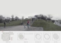 Our first priority for the site was the natural substrate. Also, the refurbishment of Tauras Hill park proposed by SI Vilniaus Planas in 2018 was responsive and suitable. We only suggest increasing the capacity of outdoor amphitheater in the lower part of the hill. In this way, this multi-functional and independent space will be open to the public and even popular musical performers.