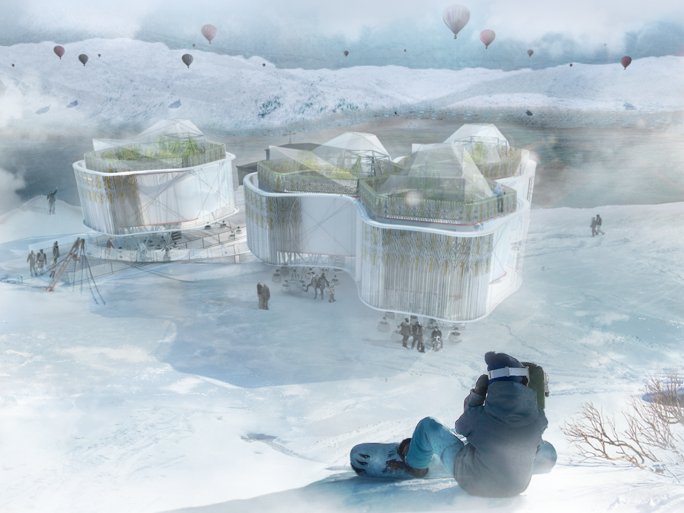Hub it! Architecture uses both electric tower parts and natural inspiring layers as driving forces for living, working and studying activities. Space design, promoting the change of the Snowy Mountains landscape into an open System, will permit reality to evolve according both nature elements and shifting concerns or users. It is a modern impermanent plan, while it is not a temporary structure, it can be disassembled and moved to another site. Its structure is suspended and therefore is a low impact structure, which means that when structures will leave or relocated elsewhere, it should be almost as if it had never been at site location.
