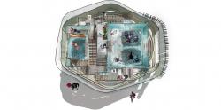 The Hub it! key design, to reinforce adaptability and replication aesthetics, it is both hexagonal form and curved lines. The South surface’s, designed to adapt to cold winter climate, and act as buffer zone against cold and snow, consists in vertically and horizontally strips, which are assembled on top and bottom to a circular tubular structure. These strips are mobile and folded to control gap width. Strips can have changing sizes and depths to adapt to either the surrounding context or site location.