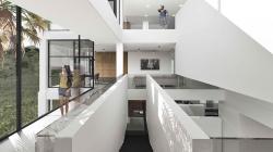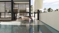 According to the project's geometry, we merge the swimming pool with the entire ground level. On the ground level, due to the more fluidity of the spaces, the walls separated from the ground and introduced themselves in the form of suspended walls with various functions in space.