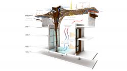 In honor of the foundation's name, we decided to reinterpret the traditional wind tower typology reshaping it into a contemporary sculpture that not only serves as a cooling device but also adds value to the space. The wind towers work in tandem with the roof structure within the five courtyards of the museum, this way all outdoor spaces benefit from the effects of the wind enhanced by the water evaporation from the pools.