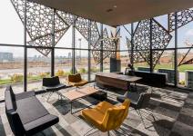 The construction of Duru Beytepe Residences, which brings a new perspective to the concept of a high-rise housing project, is continuing rapidly. Duru Beytepe Sales Office is designed and executed in parallel with the design perspective of the overall project, has just been completed. The design of the overall project exhibits a holistic harmony with its environment, is unique in its surroundings and makes a difference; and design of the sales office is also intended to be designed with this concept. It is volumetric planning and façade cladding is entirely a product of this design perspective. The façades with mesh placements are completely positioned to meet the climatic requirements of the location.