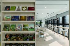 These are specially designed for its functions : 1.circular arc and high ceiling An arc-shaped bookcase has been spiraling to the ceiling, the top with an open design to make the space look more spacious and bright. Low-rise bookcases are designed to make visitors who first-time to this space to feel opened, the second floor bookcase covering the toilet to make visual beautification, The highest bookshelf supports the ceiling bookshelf, and make the overall structure more stronger. 2. the Chamber of Secrets Inspired by Harry Potter and the Chamber of Secrets, the bookcase is designed to be rotated, block a large space into three sites, also has the function of sound insulation. 3.Promote pressureless reading The book is divided into five categories, diet, life, travel, aesthetics and childlike fun, the first four items is the personal hobby of Wang Pin Group Dai Shengyi, he loves to travel, and learns oil painting for many years, joining children's books, in order to encourage adults Read with children, design different tables and chairs in the EP-books, You can pick a book, read in your favorite posture for full day