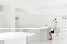 There is no more extra space in this endless white space except the working area. Lin emphasizes the mobility of space with constructivism and focuses on his creation, hoping to give extremely play to his flow of energy efficiency.