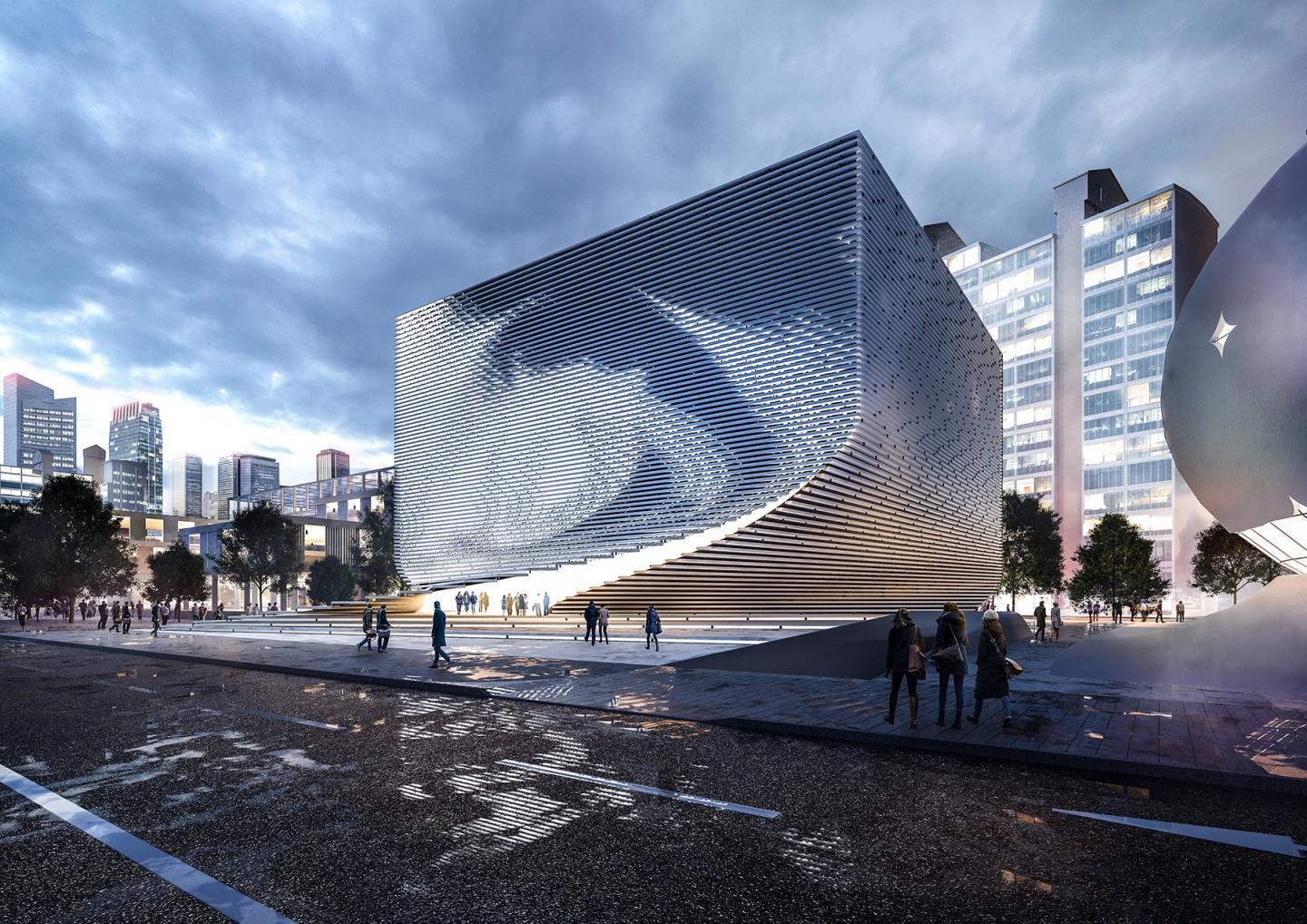 The dynamic design will serve as a sculptural landmark along the future cultural mile in Chang-dong. Its twisting monolithic shape enriches the surrounding public space as well as the overall architectural identity of the district.