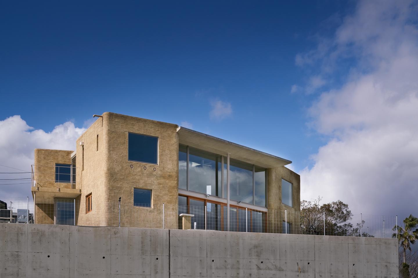 The site is located in a residential neighborhood covering the hilltop overlooking Sakurajima. To our surprise, an American owner asked us for a sustainable residence using adobe or earth like Taos Pueblo, an ancient pueblo in the arid region of the United States designated a UNESCO World Heritage Site. While using adobe bricks in Kagoshima was difficult due to its wet climate, we saw a primitive but progressive possibility in a house made with native soil. There lies unused underground soil known as shirasu (volcanic soil) in Aira Caldera of Kagoshima. Using shirasu, we designed a brick house that uses blocks as its foundational structure for the first time. With limited block and concrete aggregate resources in Japan, we put shirasu to practical use as an alternative source and proposed a new environmental architecture from a long-term perspective.