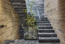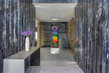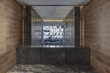 On the second level was located the private area of the house that has 3 bedrooms each with private bathroom, connected through a hall with Deep Grey marble floor and a block of the same marble finishing the space that works as limit of the double height access hall and sends the view towards the master bedroom´s studio.