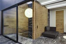 This project is located inside a complex with houses that have as design guideline for the façade the Tuscan style, the intervention was done mostly in the interiors of the house. The project designed by Serrano Monjaraz arquitectos shows a contemporary look with an elegant materials palette such as marble, wood and leather that cover floors and walls. The mayor part of furniture and luminaries were selected and imported specifically for this client.