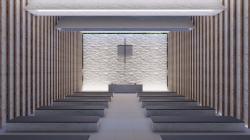 A light-filled rectangular cube that drowns humans inside. The contrast of darkness and light, black and white, ugliness and beauty in God's place. Light is a symbol of arousing a sense of spirituality, liberation and separation from the material world. Light deepens the chapel space. The entrance of light from the front also adds to the power of this sacred place.
