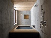 For the interiors, the employment of a larch wood framework produces concrete with subtle wood grain textures that mirror the solid larch timber wrapping the floor and ceiling planes. Such material treatment makes the house truly bespoke.