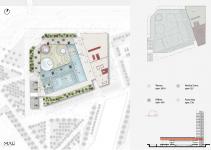 The new Sport Palace comes from the need for Fier of a representative building including different activities, and embodying a constant and active use of the southern part of the city. The building will not act just as an architectural object, but as a neighbourhood-like structure with public and private spaces and activities.Urban axes and open spaces, the pedestrian bridges, the river, the waterfront and its public amphitheatre, generate the general shape of the building.