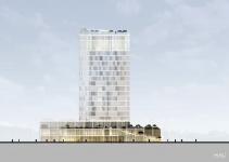On south-east, the 20 storeys tower raises from the volume’s corner, acting as a landmark with a strong contemporary look for the whole area. It is a mixed-use building embodying public and private functions from its base to its top: sport services, offices, apartments, hotel, spa and restaurants.