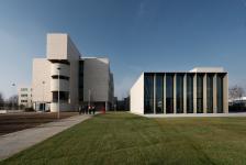 The new building, conceived as an extension of the hospital building which hosts the current Humanitas Congress Center, aims to create an independent access from the dedicated healthcare spaces to the existing congress rooms. The intention leading the design was to match necessarily the sense of representativeness with the formal traits of the existing building. The result is a composition of ceramic cladding volumes, in which the light-box, made by the glass volume of connection to the congress rooms, stands out. The maximum glass surfaces exploitation allows the optimization of natural light and it emphasizes the continuity between indoor and outdoor spaces. The inner area of the building is a flexible space surrounded by technical and functional rooms. This distribution can host different activities: conventions, conferences, presentations or parties, as well as the main function of foyer for the congress rooms. In case of need these activities can take place in the outdoor spaces, equipped as the natural extensions of indoor spaces.