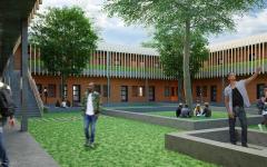 The project is composed by a pedagogical block, an administration, an auditorium, a student residence and a central communautary space with an artificial baobab.