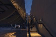 To meet the objective, the main part of the exhibition was inserted into a gigantic cylinder lifted from the ground level which offers two levels within, used for show place, and an open space beneath which can be used for temporary exhibition. Other spaces are hidden under the ground. By doing this, the main visual focus would be on the cylinder and also it paves the way for considering a courtyard that provides a majestic view to the cylinder.