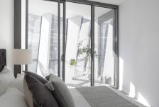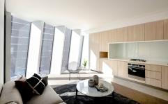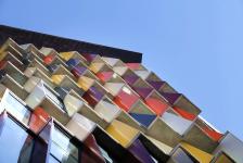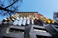 Typically, Sydney’s southern Sussex Street precinct is the home of historic masonry warehouse buildings. But a new apartment building by Tony Owen Partners seeks to fit in by making a colourful statement. Mosaic, just completed, is a 14 Storey mixed use residential/commercial building. It consists of a 4 storey retail/commercial podium with 37 units above.