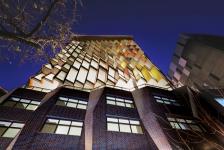 The Mosaic effect is reinforced by the use of coloured side panels which frame the windows and enhance the facets. The masonry podium is similarly uses parametric geometry to reinforce the historic streetscape. The main incorporates large areas of off-form concrete which compliments the masonry entry portals and the ceiling is made of back-lit glass to dramatically bring additional light to the space. A feature wall reinterprets the faceted geometry in illuminated sandstone. The lobby includes a café/bar which further enlivens the space. The result is a highly sculptural yet contextual in-fill building.