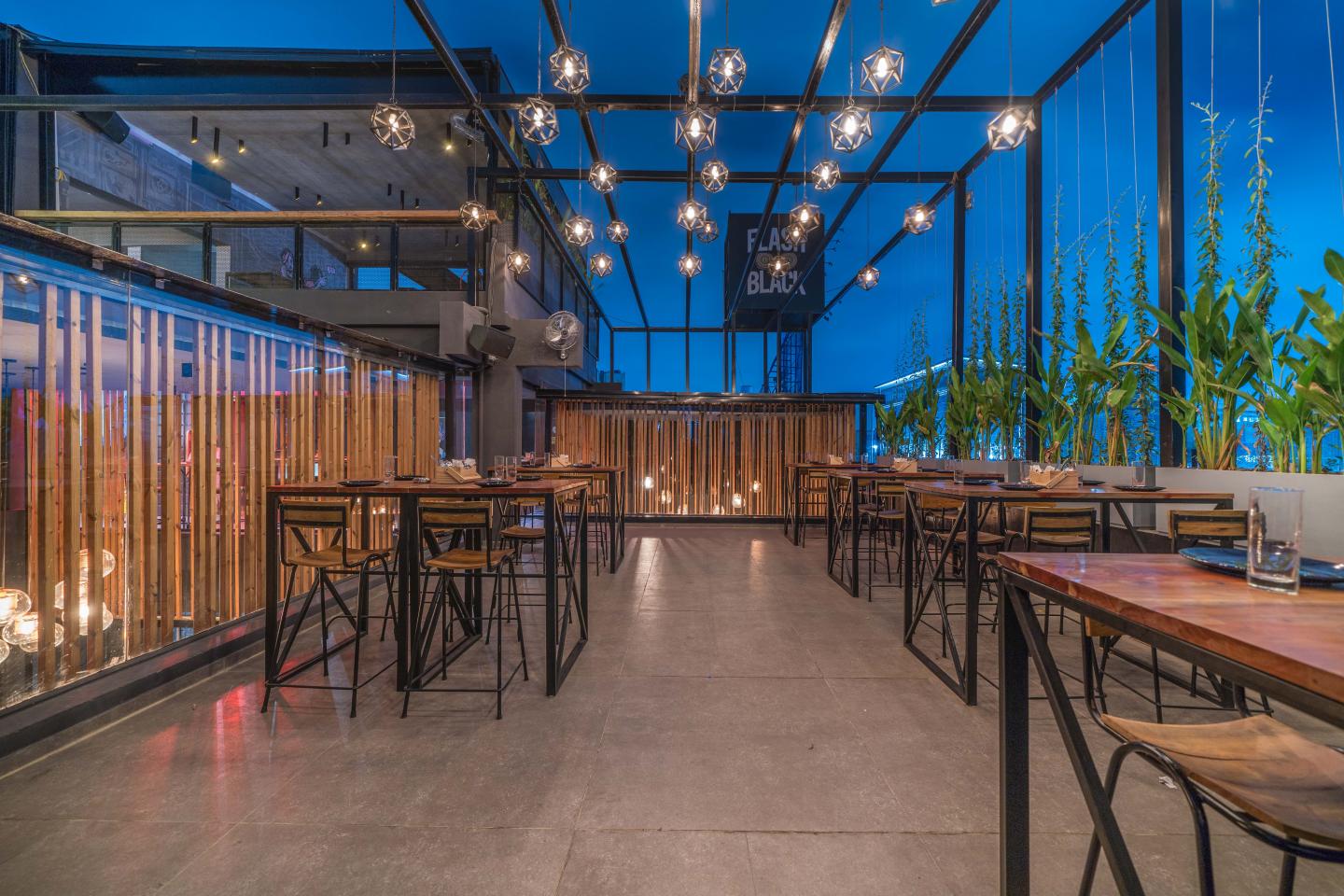 The Flashblack lounge and bar, quaintly distributes its spaces from the second floor to the terrace floor levels. With each floor possessing a distinct design perception, the common vibe of an intimate entertainment set-up is seamless. With a façade accomplished in pine wood, the structure announces the vibe of its interior, from the inception itself.