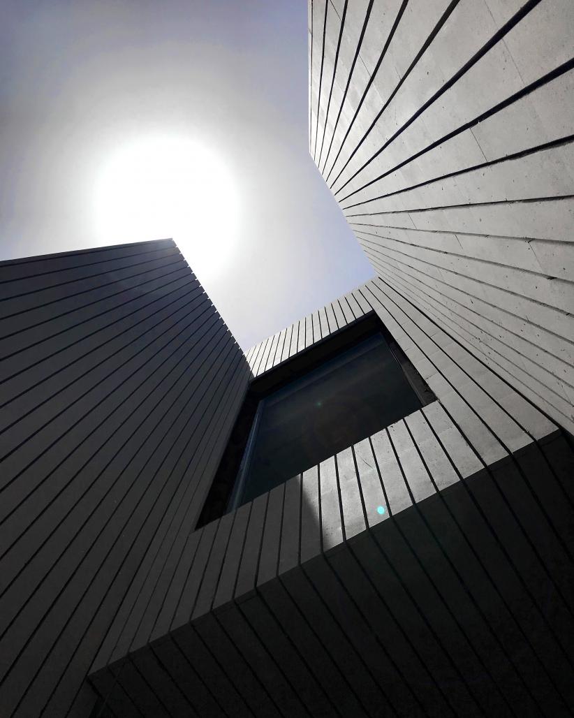 A volumetric facade is created by the unit mass evacuation through gap in the form of terraces for each floor, using the maximum sunlight. On the eastern facade, terraces provide light for bedrooms while on the northern facade they separate kitchens from living rooms. Play of light and shadow in volumetric notches and monolith texture of facade adds charm to the project.