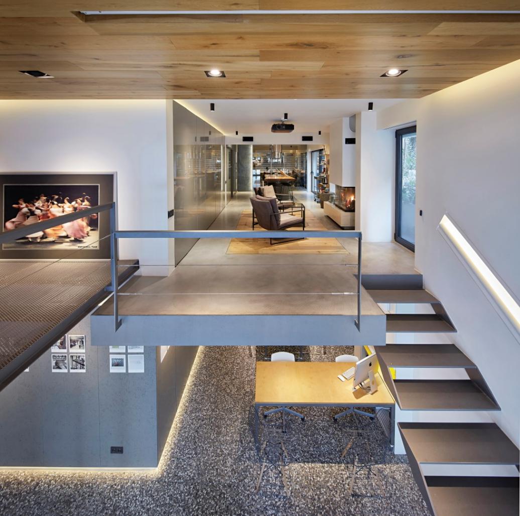 While the ground floor was planned to fulfill the necessities of a photographic studio and an exhibition space, the upper floor was designed to have the office space, kitchen area, sleeping and private resting zones. However, one of the important targets of the project was to maximize the creative space for the photographic studio, therefore in the design process upper floor and mezzanine is planned to serve as spaces for photo shooting if wanted. In this way, the project turned into a ‘loft’ space where working, living & exhibiting functions intertwined with each other under the roof of a photographic studio.