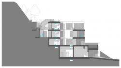This closeness to the natural is an element that has driven even the smallest aspects of the structure, such as the intense green roofs that further enhance this proximity. While inhabitants can access their own apartments through the garage and accompanying elevator from the street level, by taking the stairs they can almost feel their way through the forest. It is a structure shaped by its embedded position within a protected natural environment.