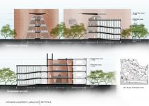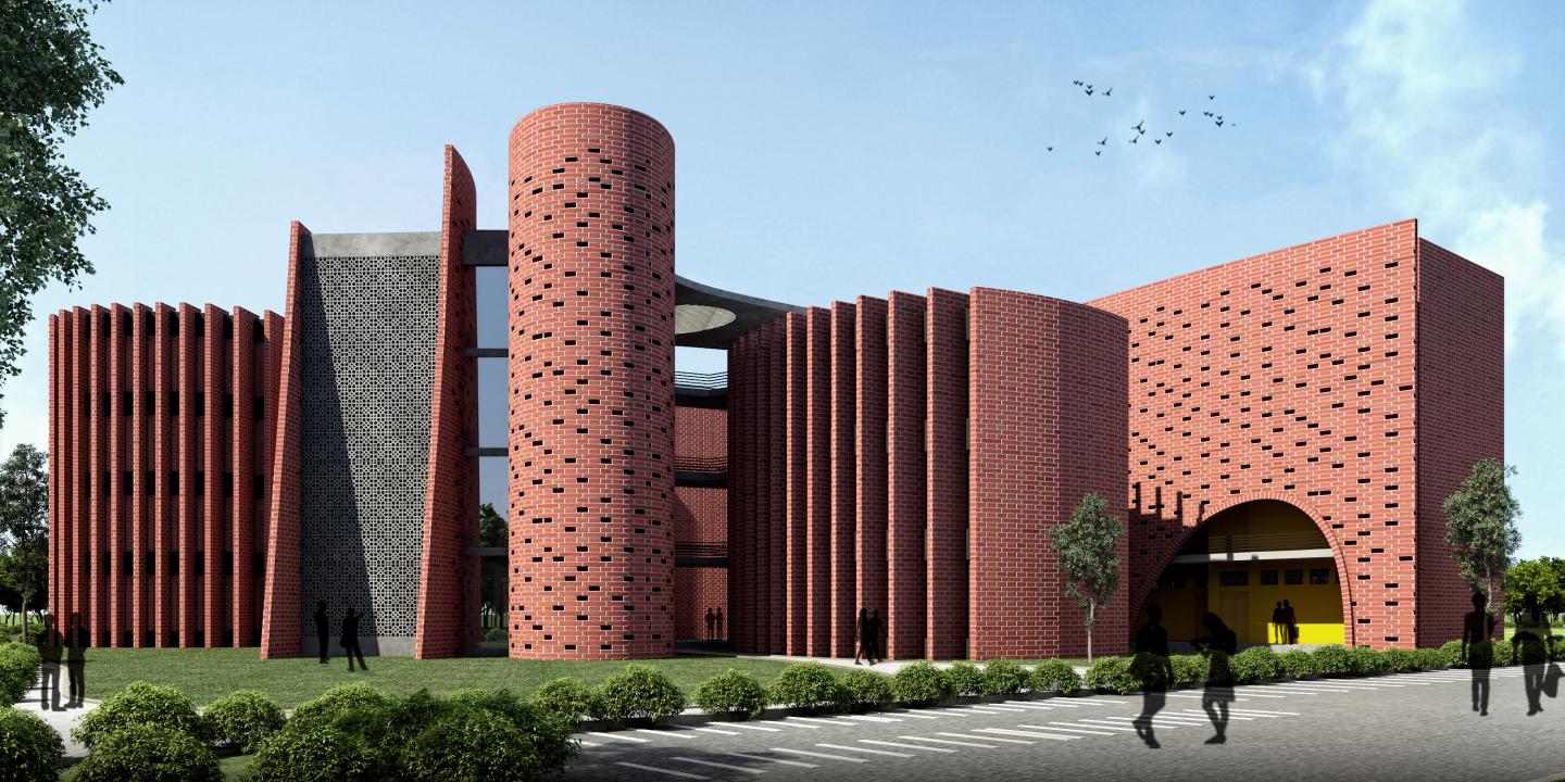 To be built in locally available brick predominantly along with concrete, the fragmentation of the built spaces and the interspersed gardens create a dynamic layout constantly changing perception of the spaces throughout the day and year.