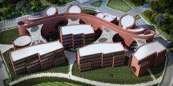 A single curvilinear main spine traverses the length of the building with branches leading to the individual blocks of educational spaces.