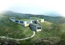 On the peak of a low seaside mountain, the new public/government observatory will be constructed. The rough hewn vernacular materials and blank white walls announce the presence of the observatory while respecting the site and creating a dynamic and attractive public ammenity for the area. Five buildings will be constructed: the main building houses the visitor`s center, staff housing, a cafeteria and the ops-center. The main observatory boasts two telescopes and a second visitor`s center. The other three buildings house technical meteorlogical equipment and public facilities.
