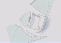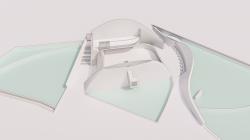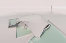 The enclosure walls do not wholly seal the interior, since, as they soar upwards they gradually become more porous, ultimately transforming into Moucharaby. The cooling breeze and natural light from the park flow freely through the walls, letting the building naturally breathe, meanwhile the floor is constantly kept warm at human body temperature.