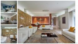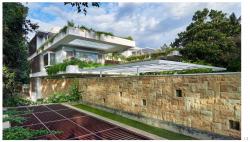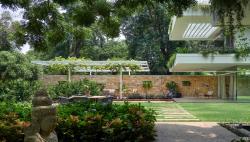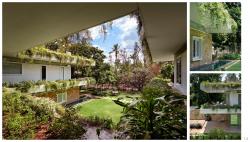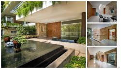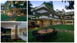 A unique project in its context, this house is located in a neighborhood of Pune that has abundant greenery. The apt use of natural elements in its creation ― such as water bodies, bridges, stone walls, and landscaped areas on all levels ― helps it merge seamlessly with its environs on the one hand while making it stand out on account of its architectural beauty.
