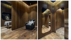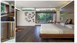 Therefore, the project was based on an H-shaped plan wherein all the spaces have three external walls, thus maintaining a nice “in” and “out” connection. The use of mirrors and reflective glass has lent itself to an optical illusion to maximize the landscaped areas, thus underscoring the feeling of being in the lap of nature.